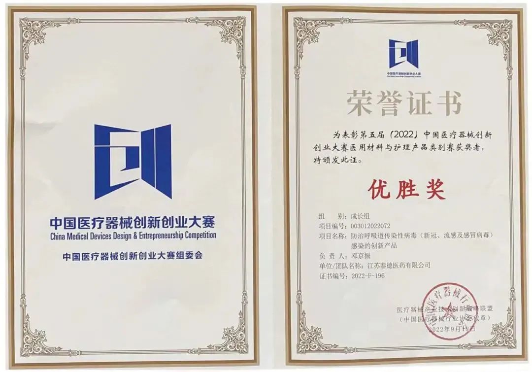 泰州大健康产业能级正在加快提升。这阵子,江苏泰德医药有限公司接连“报喜”——先是防治呼吸道传染性病毒感染的创新产品项目,在第五届(2022)中国医疗器械创新创业大赛医用材料与护理产品类别赛中,成为“防治新冠、流感及感冒病毒上呼吸道感染创新产品”领域唯一的获奖者,紧接着,“鼻可乐”产品又获得南非防治新冠、流感发明专利授权。